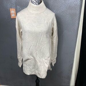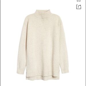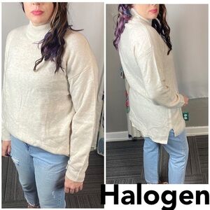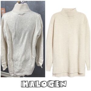 Halogen Wool & Cashmere Turtleneck Sweater In Beige Oatmeal Heather winter warm