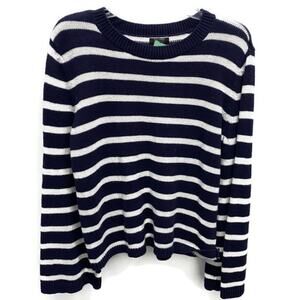 Halogen X Atlantic-Pacific Crew Sweater Sz Large Navy/White Cathy Stripes NWT