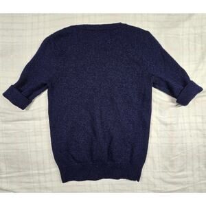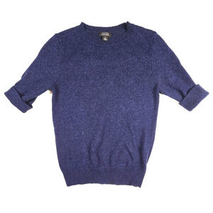 Halogen X Atlantic-Pacific Short Sleeve Sweater Wool Blend Blue Glitter Glam XS