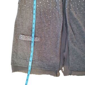 Halogen XL Gray Jem Beaded Open-Front Cardigan Sweater Pockets Wool Blend