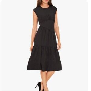 Halogen black asymmetric pannel tiered midi witchy career casual dress size med