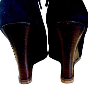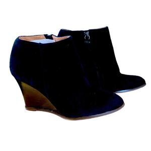 Halogen black suede leather wedge shoes 4” ledges side zipper size 10 m