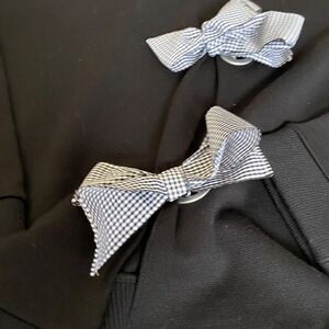 Add silver grommets and beautiful black & white checkered grosgrain bows.