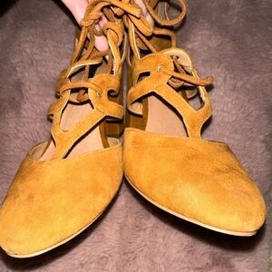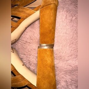 Halogen brown leather lace up block heel round toe heels sz 9 fall boho