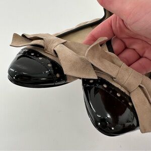 Halogen flats size 6 beige suede black patent cap toe pointy toe balletcore