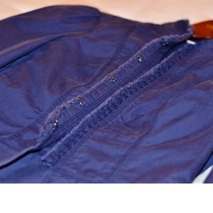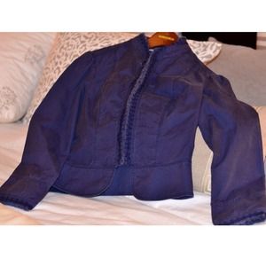 Cropped halogen navy jacket. Size medium with claw enclosures. 100% cotton.