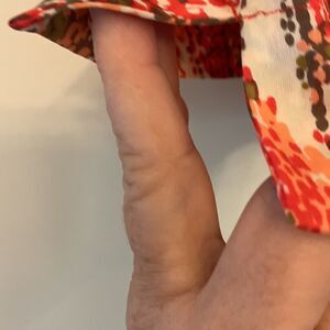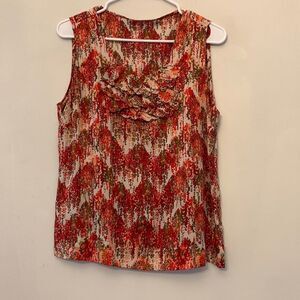 Halogen multicolored sleeveless blouse with ruffle front. Size MP Length 24”
