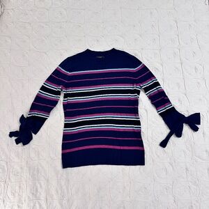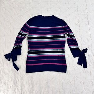 Halogen navy sweater with stripes and tie sleeves size S