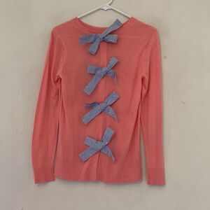Halogen pink long sleeve sweater with blue bow ties on the back Size XSP NWT