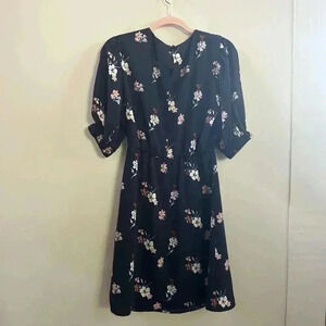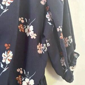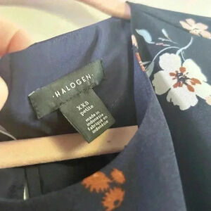 Halogen navy puff sleeve floral midi dress. Size XXS petite. Excellent used condition