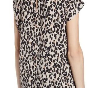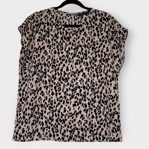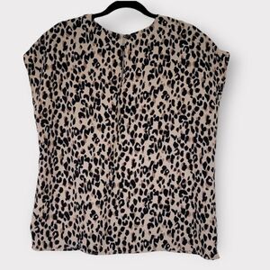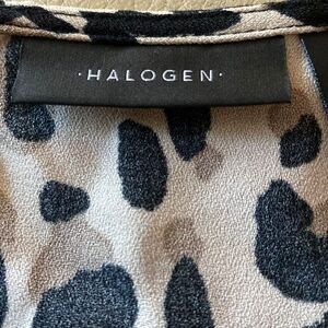 Halogen Leopard print, animal print Short sleeve Over sized Loose fitting Satin feel 100% polyester Machine washable Size small