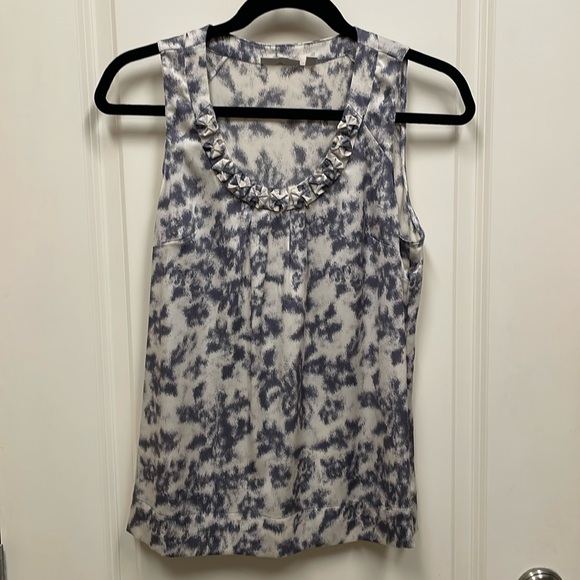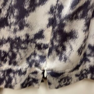Halogen, gray and cream abstract design with hidden side zipper, rounded neck, detail, 93% silk 7% spandex