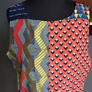 Halogen silky blocked geometric print sleeveless shift midi. Medium.