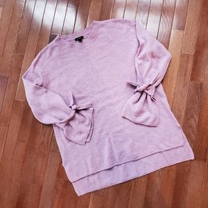 Gently used, Halogen crew neck tie bell sweater. High/low hem, side slits. Cozy and oversized, runs one size large. Measures about 28" in length back down, some very mild piling, due to material composition, very unnoticeable.