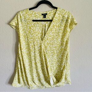 Halogen woman crossover neckline blouse size 1 neon green flowy short sleeve