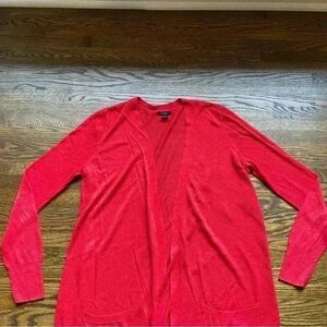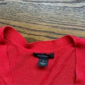 Halogen women’s side slit cardigan medium red open face long Christmas holiday