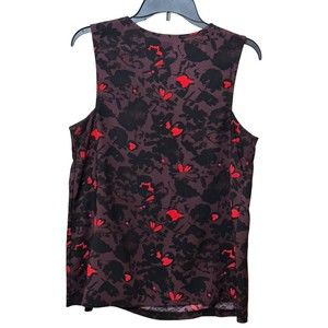 Halogen women’s sleeveless ribbon trim Plum Printed top size Med