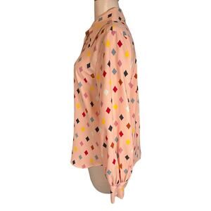 Add a playful pop to your wardrobe with this Halogen x Atlantic-Pacific collaboration blouse. Featuring a colorful diamond print on a silky blush base, this top blends vintage charm with modern sophistication. Perfect for both office chic and weekend outings.