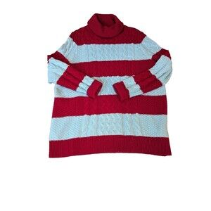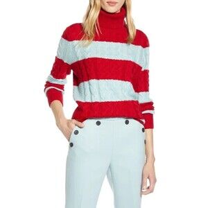 Halogen x Atlantic-Pacific Cable Knit Turtleneck Sweater - Red/Blue …