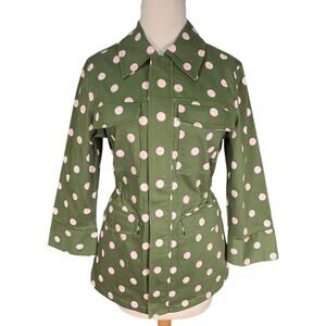 Halogen x Atlantic-Pacific Olive Green Polka Dot Utility Jacket Size Small NWOT