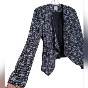 Halogen Black and White Abstract Printed Open Front Blazer Jacket Sz Small