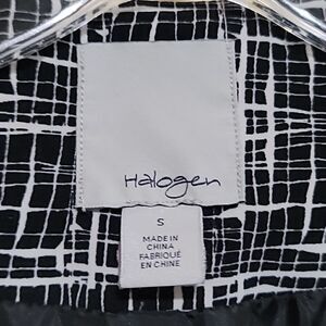 Preowned Halogen Black and White Abstract Printed Open Front Blazer Jacket Sz Small. Blazer is in excellent condition.