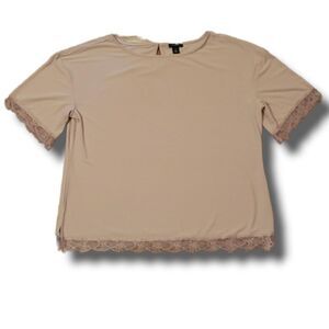 Halogen Blush Pink Lace Detail Scoop Neck Short Sleeve Blouse Size XL NW…