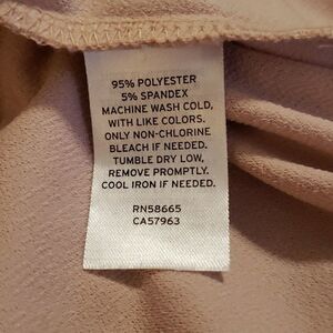 Beautiful Blush pink colored blouse has a small keyhole button back with lace detailing around the sleeves and the bottom hemline. It has a scoop neckline.