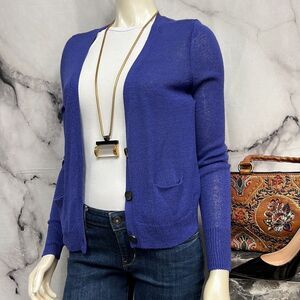 Halogen purple knitted cardigan with black buttons excellent brand new condition with tags under arm measures 17 inches of crossed shoulder to bottom 23 inches
