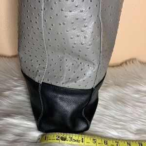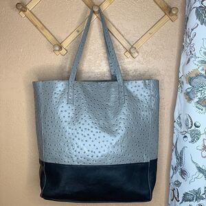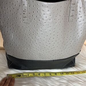 Halogen Gray & Black Leather Tote. Normal wear with Minor marks throughout. Please see all pics.