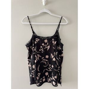Halogen Lace Camisole Top Floral Size Small Black Spaghetti Strap V Neck