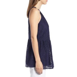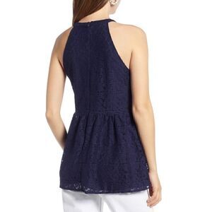 DETAILS & CARE A flouncy peplum puts the finishing touch on this sleeveless top, styled with cutaway shoulders and covered in lovely lace. Back zip closure Halter neck Lined 52% cotton, 48% nylon Machine wash, dry flat Imported SIZE INFO True to size. Regular & Petite (P): XXS=00, XS=0-2, S=4-6, M=8-10, L=12-14, XL=16 (14W), XXL=18 (16W).