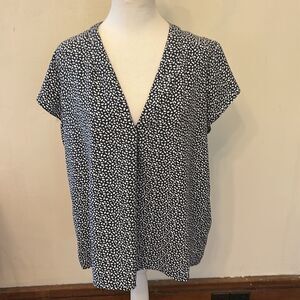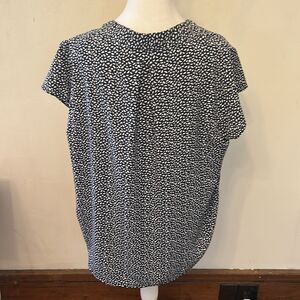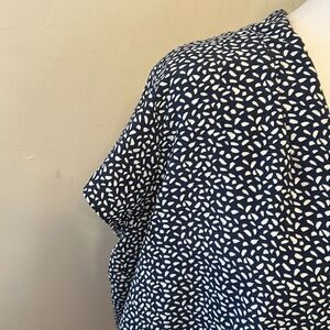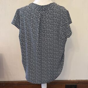 Halogen Navy blue and White Relaxed Boxy Short Sleeve Blouse Size 1 EUC