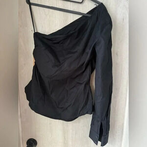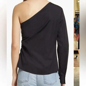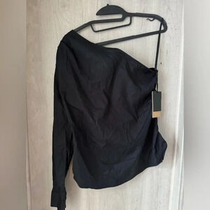 Halogen Poplin One-Shoulder Top Black NWOT