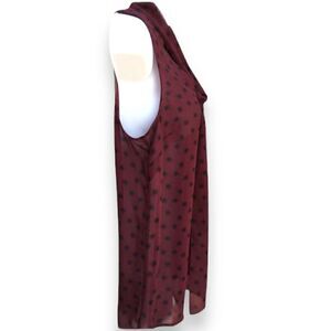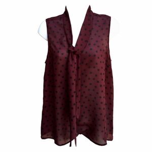 Halogen Sheer Maroon Black Starburst V-Neck Tie Sleeveless Blouse
