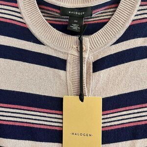Halogen Nordstrom brand Striped Crew Neck Cardigan Sweater, size S small