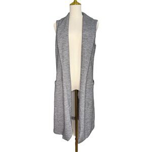 Halogen Women’s Medium Long Sleeveless Duster Cardigan Vest Gray Pockets