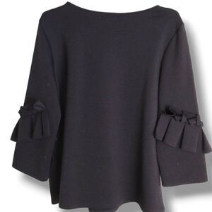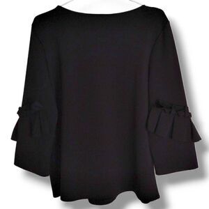 Halogen Womens Top Sz Black Knit Ruffles Classicore Cottagecore Bohemian Boho