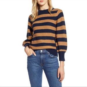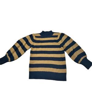 Halogen X Atlantic-Pacific Striped Crewneck Sweater Blouson sleeves XS