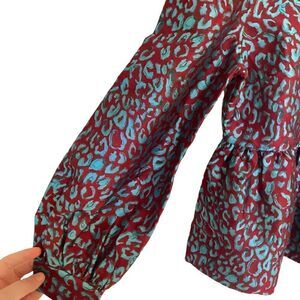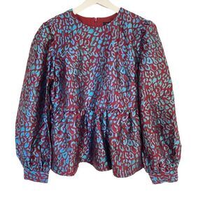 Halogen X Atlantic-Pacific NEW long sleeve peplum small red blue textured