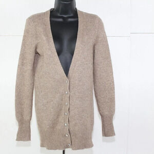 ladies tan Halogen button up sweater size XS. with silver specks.