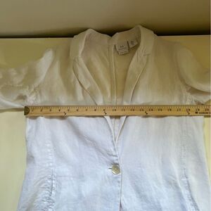 100% linen blaze by H by Halston. One shell button closure, roll up sleeves.