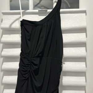 BNWT Halston one shoulder floor length black dress.