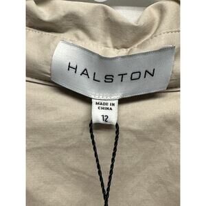 Brand new with tags — Halston Beckett Dress in a sophisticated light taupe. Made from crisp cotton poplin with a relaxed, flowy silhouette and flattering self-tie waist belt with gold-tone D-ring detail. Features wide draped sleeves, a collared neckline, and high-low hemline that moves beautifully.