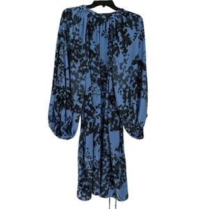 Halston Blue & Black Floral Print Long Sleeve Dress with Balloon Sleeves NWT