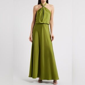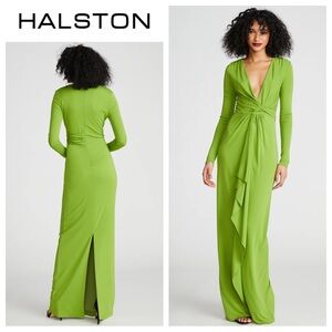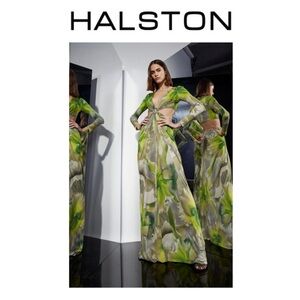 Crafted of crêpe, Halston's strapless gown features a folded neckline, a draped back, and a timeless A-line silhouette.