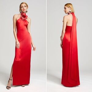 Halston Brigette Crêpe Strapless Gown In Hibiscus US 6 $645