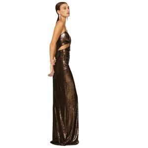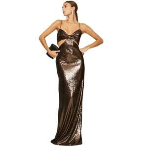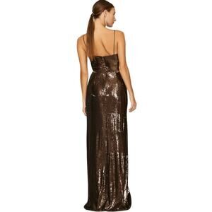 Halston Chloe Sequin Gown in Chocolate Brown Maxi EUC Size 14