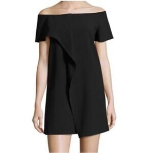 Halston Cold Shoulder Drape Dress Mini Minimalist Old Money Assymetrical Size 10 Womens Black