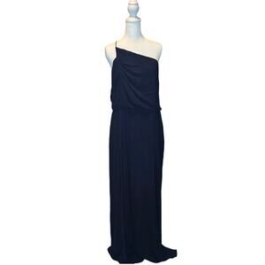 Halston Delicate Shirred Gown Evening Formal Navy Blue NWT Size 14